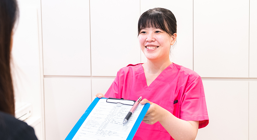患者様に笑顔でお帰りいただけるよう、心を込めて笑顔で対応しております。